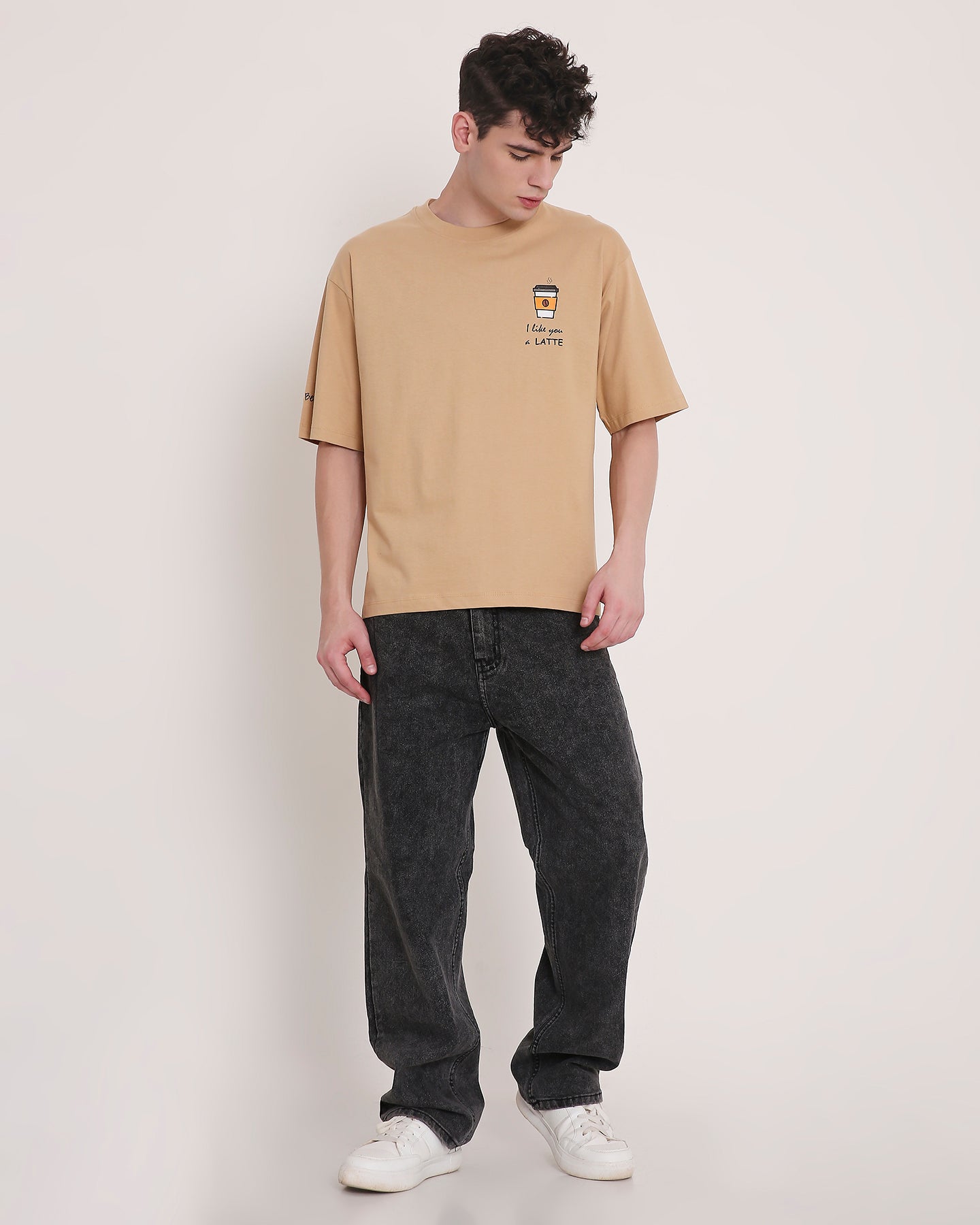 Bee & Beaver “I Like You a Latte” Oversized T-Shirt – Taupe
