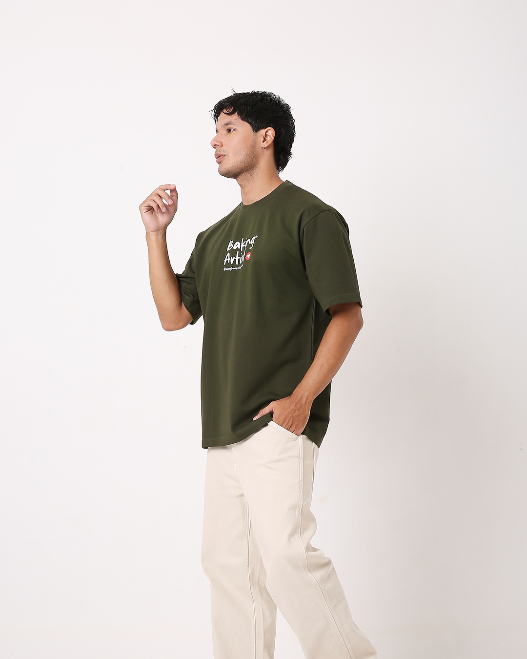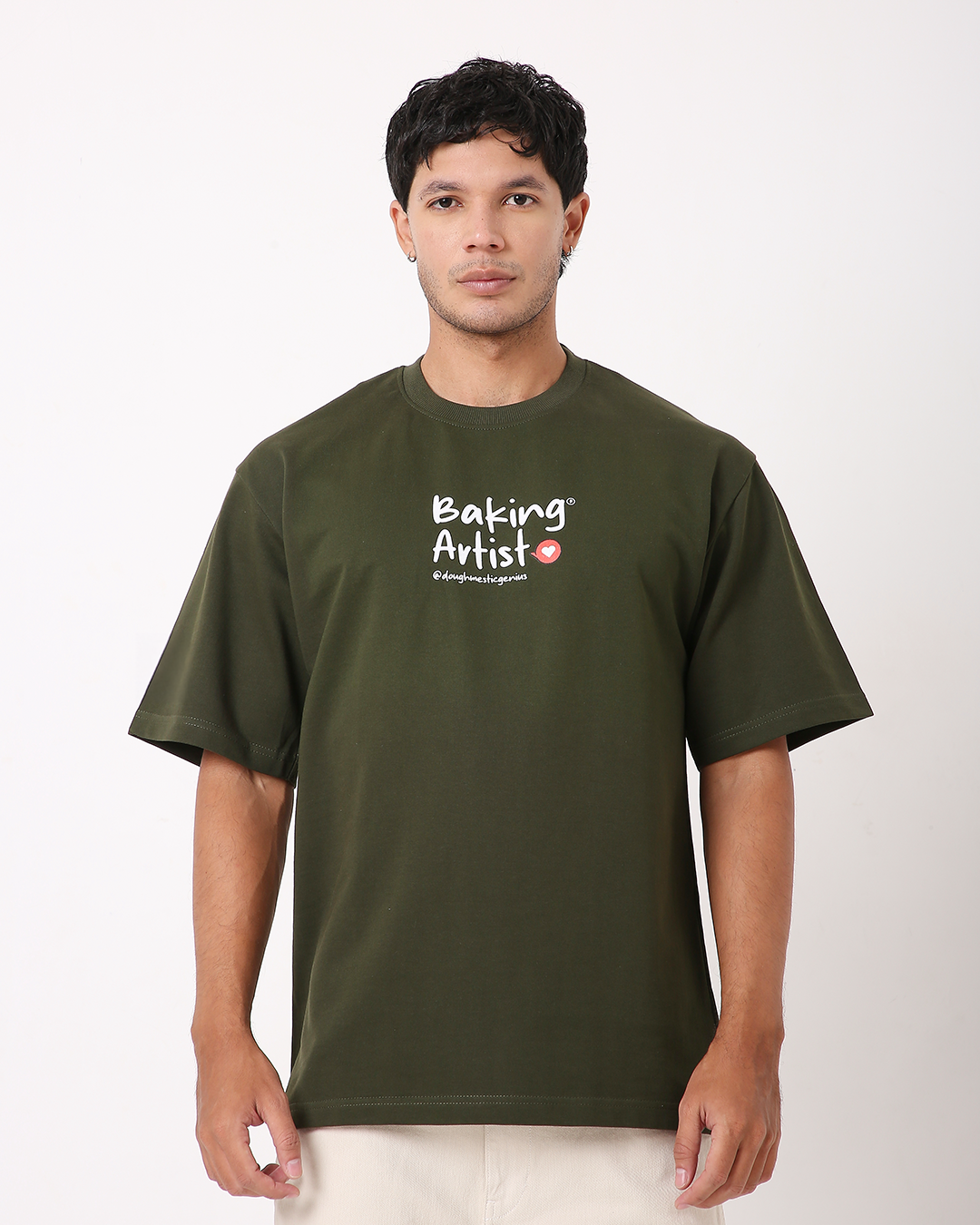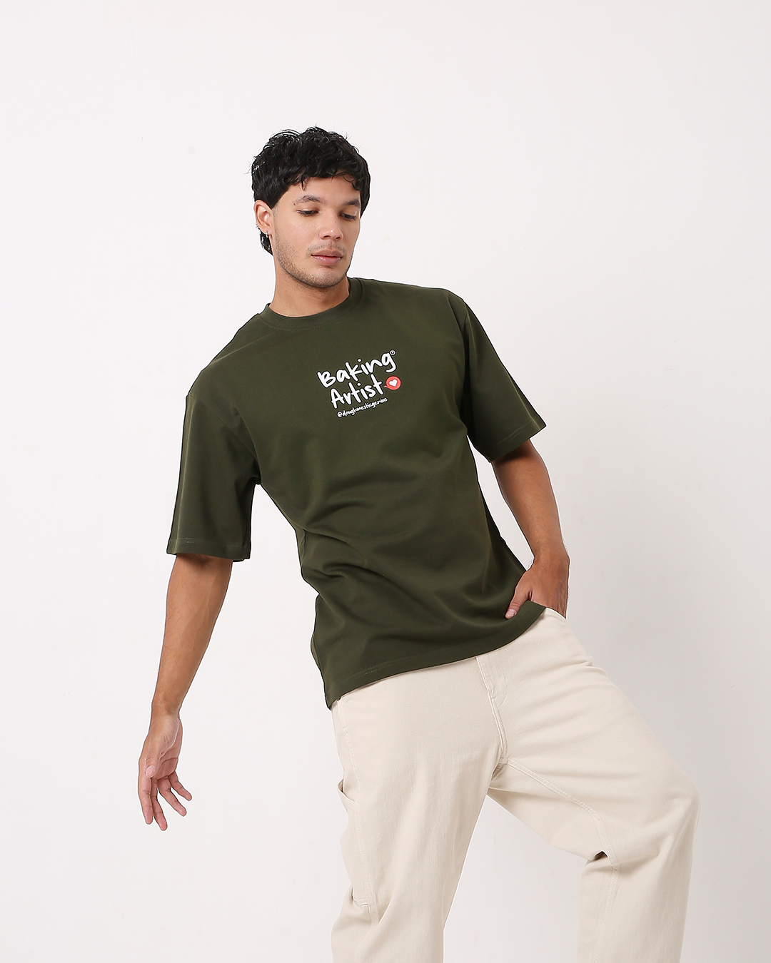 Bee & Beaver “Baking Artist” Oversized T-Shirt – Olive Green