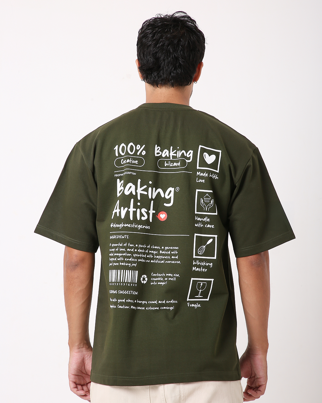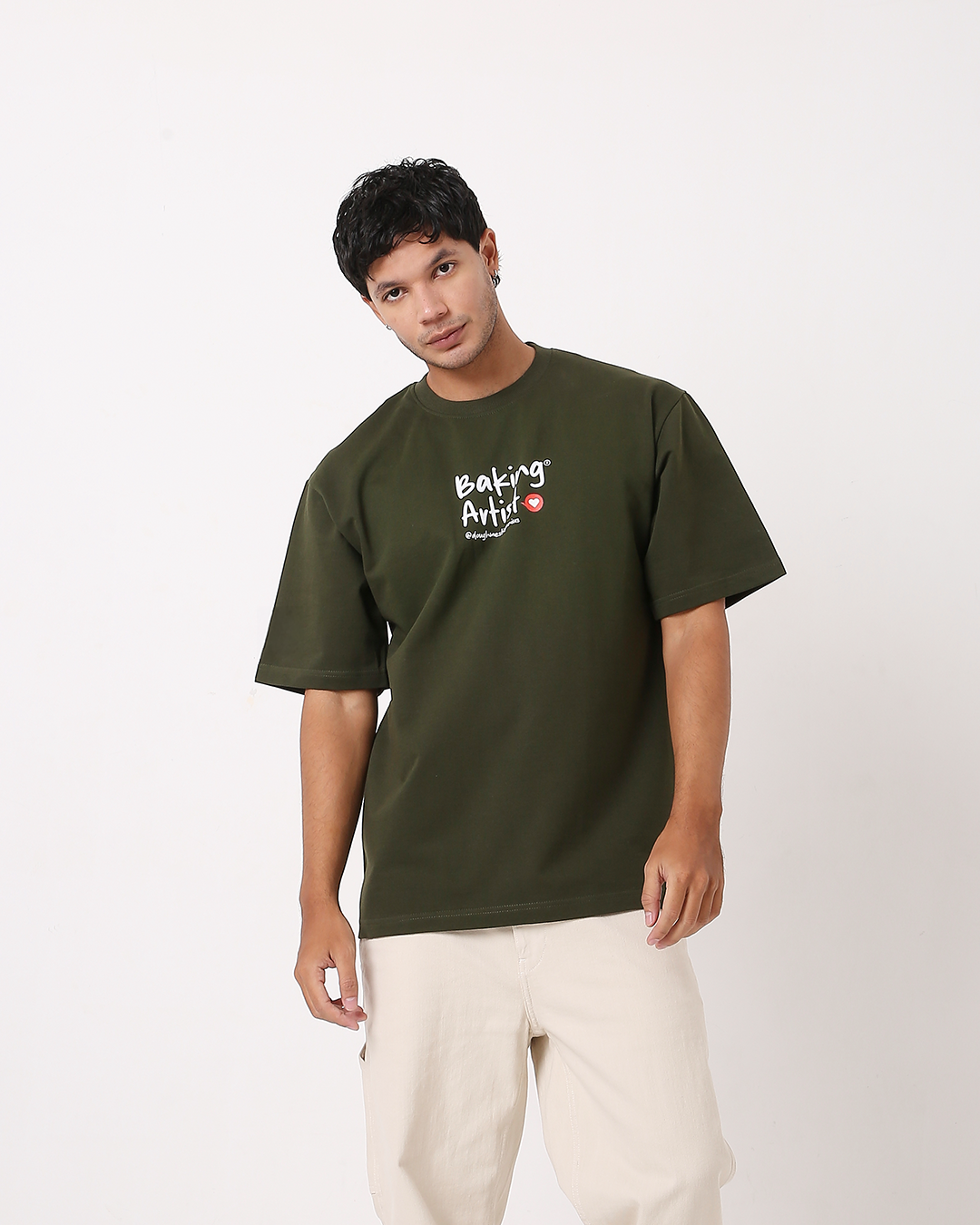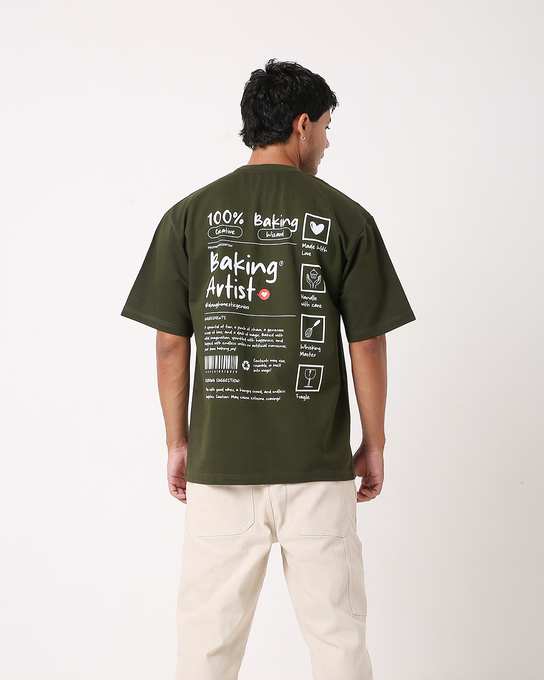 Bee & Beaver “Baking Artist” Oversized T-Shirt – Olive Green