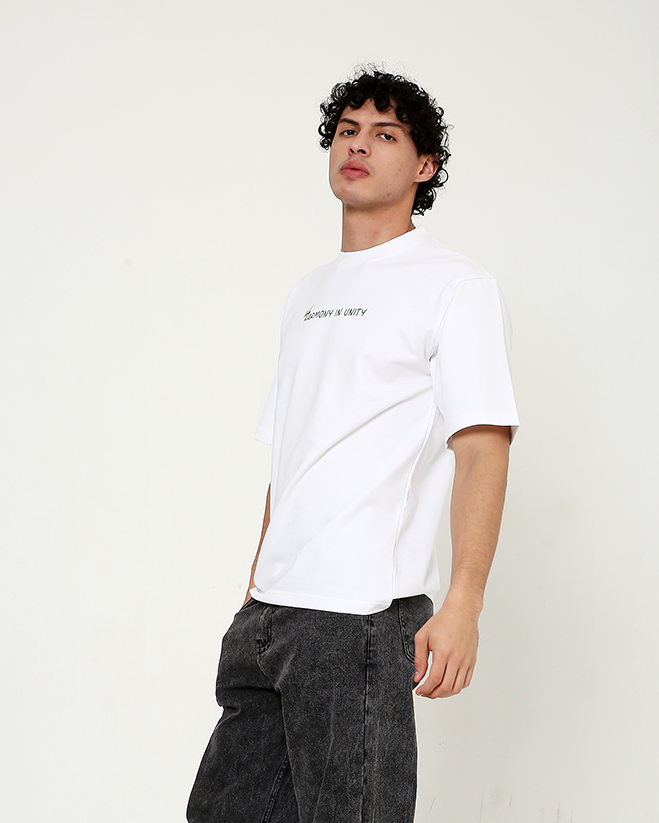 Celebrate togetherness and the beauty of collaboration with this oversized t-shirt from Bee & Beaver (B&B). Featuring the inspirational phrase “Harmony in Unity” on the front, this tee serves as a wearable reminder of the strength and balance that comes when individuals work together. The minimalist white background enhances the empowering message, making it a timeless, versatile piece for any wardrobe.
